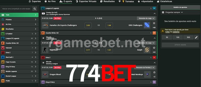 A aposta 774Bet oferece aos jogadores a experiência mais conveniente de apostas em eSports!